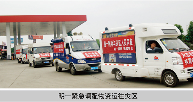 早在汶川地震,明一奶粉就迅速向汶川災區捐贈愛心物資,同時明一員工也為汶川災區紛紛捐款,幫助重建家園;向四川雎水小學捐贈課桌及文體用品幫助雎水小學復課行動;通過《海峽傳情》欄目為受災地區的在榕大學生提供公益金,助力悻悻學子完成學業;全程支持周華健《花的拼圖》演唱會,共建災區愛心玫瑰園…這些愛心義舉,充分彰顯明一國際對災區人民濃濃的愛心和作為一家國際型知名企業的社會責任。一方有難,八方支援,明一國際繼續以迅速和實際行動關心和援助雅安地震災區,踐行榜樣的力量,同時,明一國際也祝愿災區能盡快恢復生產,重建家園。