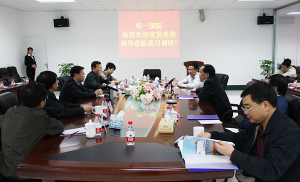 日前,福建省發改委黨組書記、主任鄭柵潔率工業處處長林學強、股證處處長劉義云、長樂市市長王紹知等一行,蒞臨明一高新科技園調研考察,明一國際董事長助理林強陪同參觀明一高新科技園,并向考察組介紹明一國際未來發展規劃。