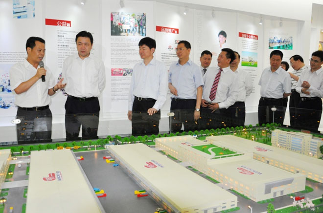在明一企業文化展示廳,楊書記對明一國際技術設備、產品生產、銷售情況進行了詳細了解,并指出,明一高新園區生態環境優美,技術先進,明一國際要堅持以科技創新為先導,打造核心競爭力,繼續做大做強。