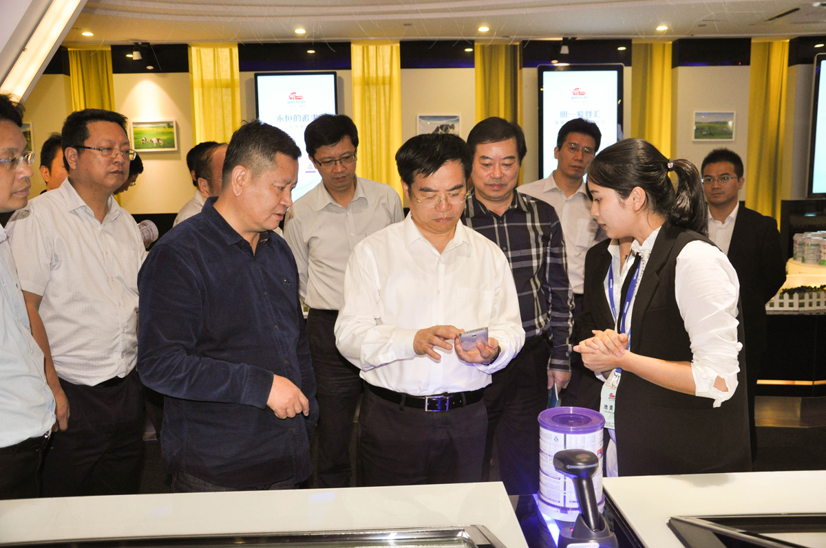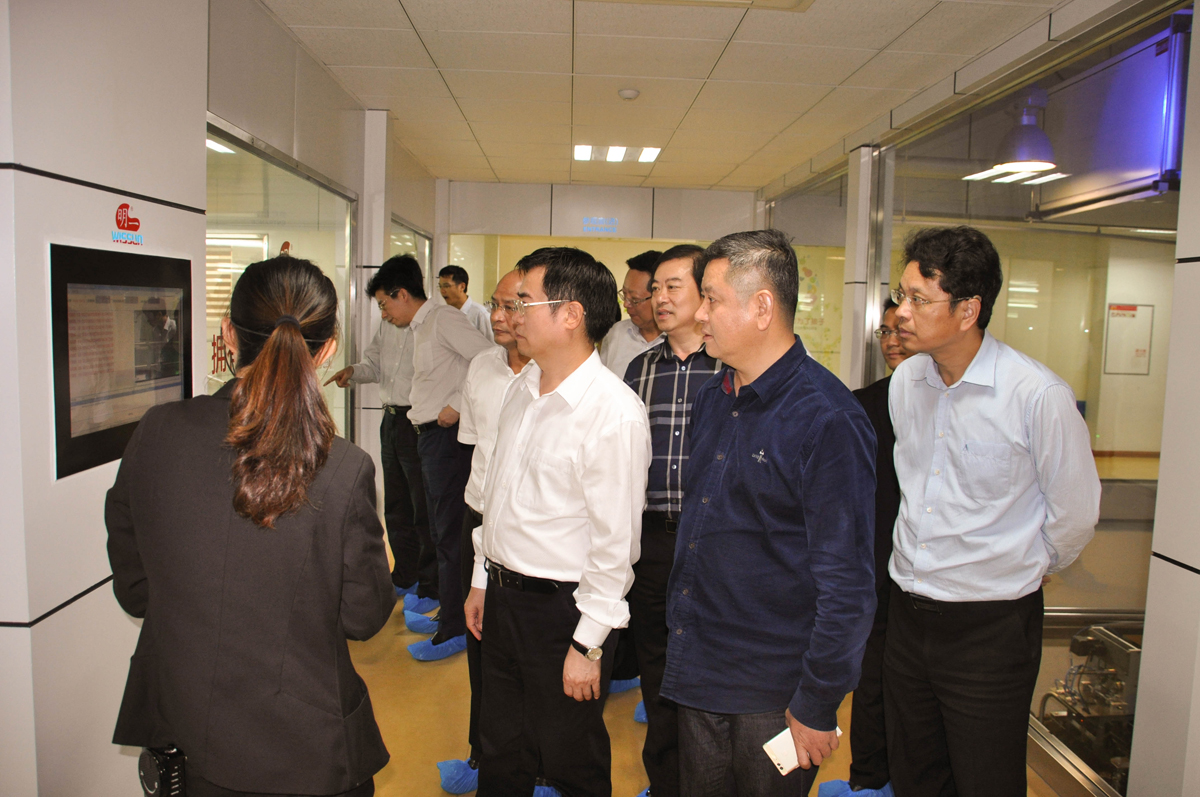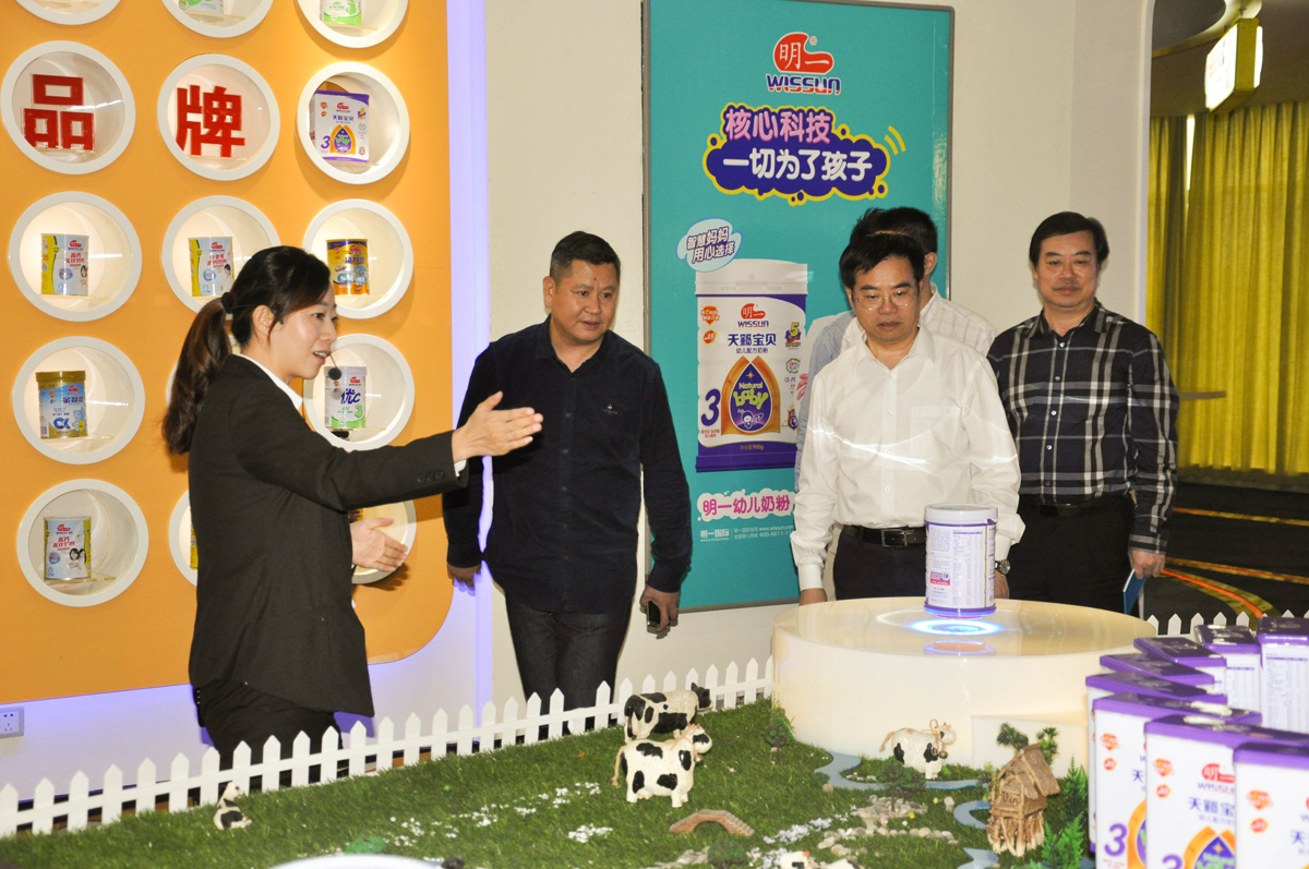 在生產大樓,通過參觀通道透明的玻璃窗,周省長仔細了解明一國際核心科技自動化生產線,對明一奶粉嚴格的生產管理、先進的生產工藝及GMP十萬級的生產衛生環境給予了充分的肯定。
