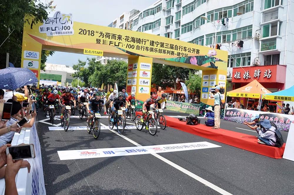 12日, 2018“為荷而來?花海騎行”建寧第三屆自行車公開賽暨追FUN100?自行車俱樂部系列賽在建寧縣激情開賽。來自全國千人共聚在醉美建寧,見證一場(chǎng)“花海騎行”。廣大自行車騎行愛好者騎行于青山綠水間,用力量體驗(yàn)速度與激情,在享受騎行樂趣的同時(shí),飽覽花海梯田美景。同時(shí),明一國際員工代表也參與了男子公路組的比賽,充分發(fā)揚(yáng)了勇戰(zhàn)的氣魄和膽識(shí),表現(xiàn)出了較高的體育競(jìng)技水平。