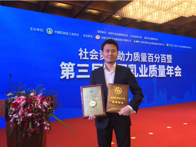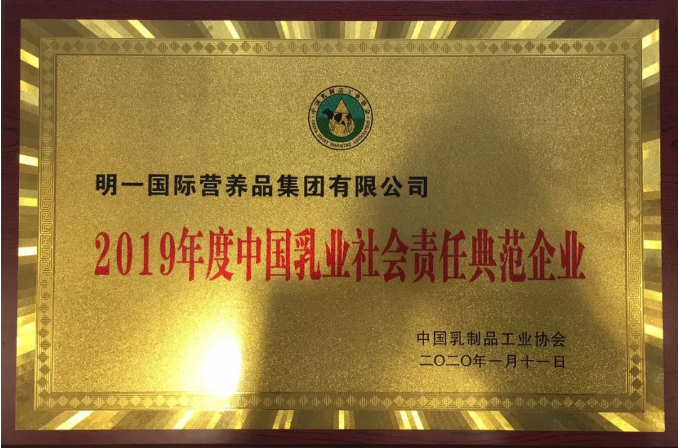 會(huì)議對(duì)2019年度產(chǎn)品質(zhì)量和履行社會(huì)責(zé)任所取得優(yōu)異成績(jī)的企業(yè)進(jìn)行表彰,明一國(guó)際榮獲“質(zhì)量金獎(jiǎng)”、“2019年度中國(guó)乳業(yè)社會(huì)責(zé)任典范企業(yè)”殊榮。明一世代生態(tài)CEO陳宏鑫出席會(huì)議并領(lǐng)獎(jiǎng)。