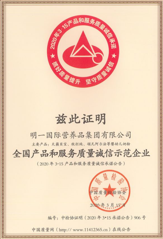 當(dāng)前,打贏疫情防控阻擊戰(zhàn)是全國上下的頭等大事,3.15更是社會(huì)各界、尤其是廣大消費(fèi)者高度關(guān)注的焦點(diǎn)。2020年3.15活動(dòng)中,中國質(zhì)量檢驗(yàn)協(xié)會(huì)組織開展的2020年3.15產(chǎn)品和服務(wù)質(zhì)量誠信承諾主題活動(dòng)中,明一國際再獲殊榮,榮獲“全國產(chǎn)品和服務(wù)質(zhì)量誠信示范企業(yè)”稱號(hào)。