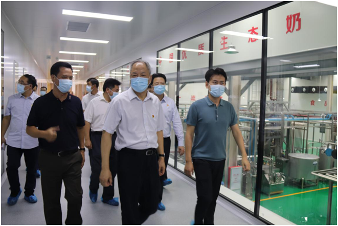 在液態奶車間,陳宏鑫總裁介紹說,明一國際的液態奶生產車間,按照世界先進乳制品企業的標準規劃建設,集自動化、信息化、規模化于一體,并通過國際先進檢測儀器和設備,進行全方位質量控制和風險監測,讓國人每一天都能飲用到新鮮、放心、優質、健康的好牛奶。