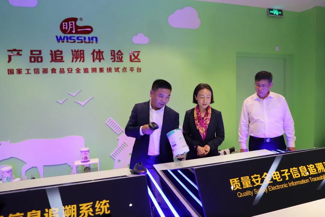 在奶粉生產車間,郭副省長仔細詢問了明一奶粉生產的全過程,對明一國際核心科技生產線、嚴格的生產管理、先進的生產工藝給予了充分肯定,并親自體驗了明一國際質量安全電子信息追溯系統,對明一國際從奶源到生產的每一環節安全可追溯,透明公開呈現給消費者,給予高度贊賞。