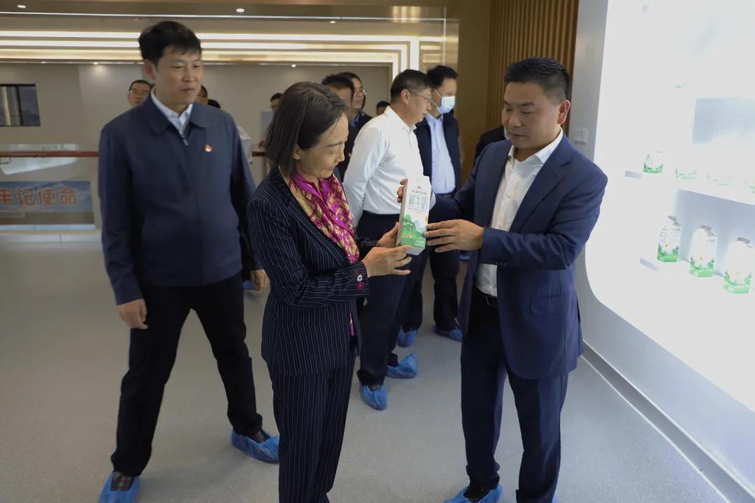 在液態奶生產大樓,鄭總裁詳細介紹了按照世界先進乳制品企業標準規劃建設的液態奶生產加工車間。郭副省長表示:企業要以提高產品核心競爭力和提升企業品牌形象為抓手,加大創新力度,加快智能化改造步伐,不斷提高產品質量和核心競爭力,促進產業鏈不斷升級優化。