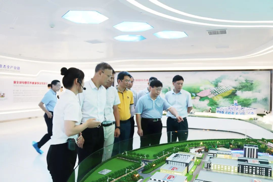 張副主席一行實地察看了明一國際嬰幼兒奶粉生產大樓和液態奶生產大樓,聽取了明一國際建設“海峽云上牧歌”田園綜合體項目的情況匯報,現場親自品嘗了明一天籟牧場生態鮮奶。