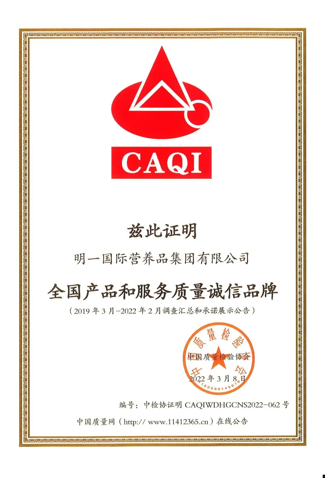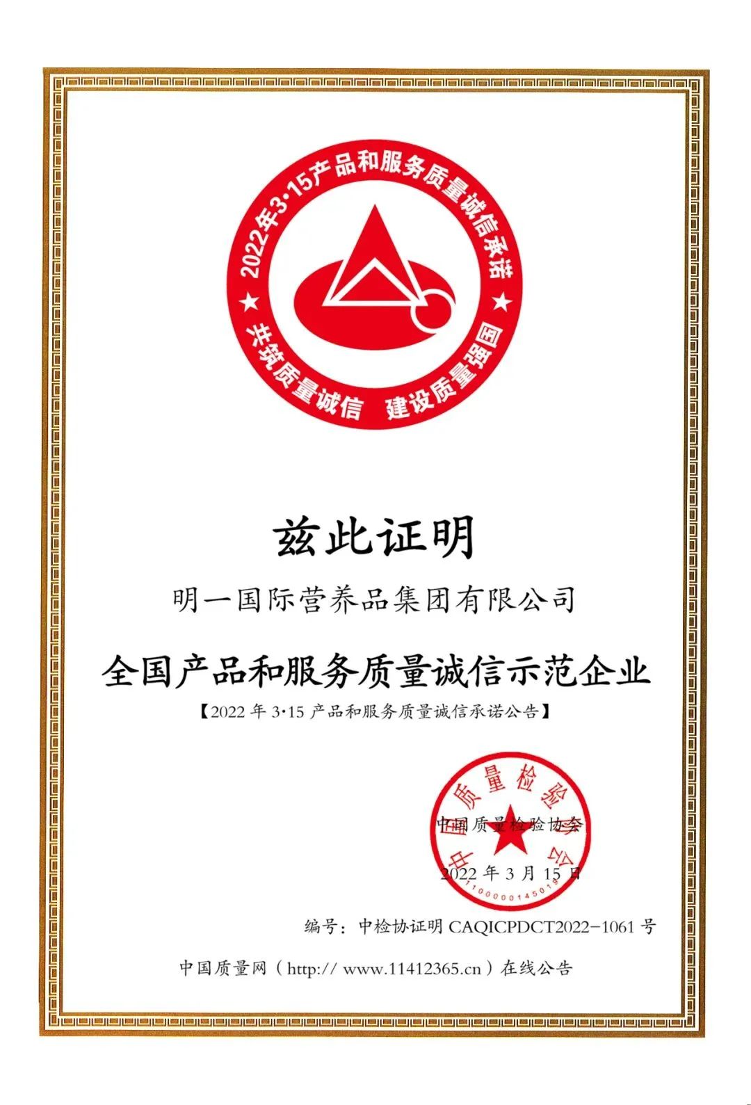 2022年315消費(fèi)者權(quán)益日,明一國(guó)際深入貫徹質(zhì)量安全理念,公開產(chǎn)品和服務(wù)質(zhì)量誠(chéng)信承諾,憑借過(guò)硬的質(zhì)量和良好的市場(chǎng)口碑,榮獲中國(guó)質(zhì)量檢驗(yàn)協(xié)會(huì)頒發(fā)的“全國(guó)產(chǎn)品和服務(wù)質(zhì)量誠(chéng)信示范企業(yè)”、“全國(guó)乳制品行業(yè)質(zhì)量領(lǐng)先企業(yè)”、“全國(guó)產(chǎn)品和服務(wù)質(zhì)量誠(chéng)信品牌”、“全國(guó)質(zhì)量檢驗(yàn)穩(wěn)定合格產(chǎn)品”四項(xiàng)殊榮。