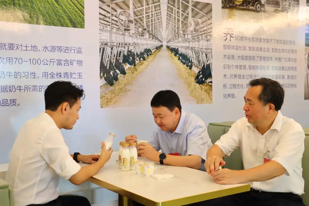 在天籟牧場,陳宏鑫董事長向調研組詳細介紹了,明一國際立足三明建寧綠色生態環境優勢,發展綠色經濟,打造三產融合的生態全產業鏈。明一國際的自有自控的萬頭奶牛生態牧場,先進的奶牛管理體系、生產體系,上下游協同發展,增強全產業鏈優勢,受到了調研組的一致盛贊。