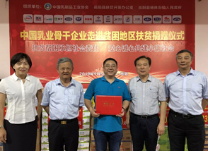 - 7月5日,由中國乳制品工業協會、岳陽縣扶貧辦、岳陽楊林街鎮人民政府共同組織的“中國乳業骨干企業走進貧困地區扶貧捐贈活動”啟動儀式在湖南岳陽市岳陽縣楊林街鎮楊林中學舉行。