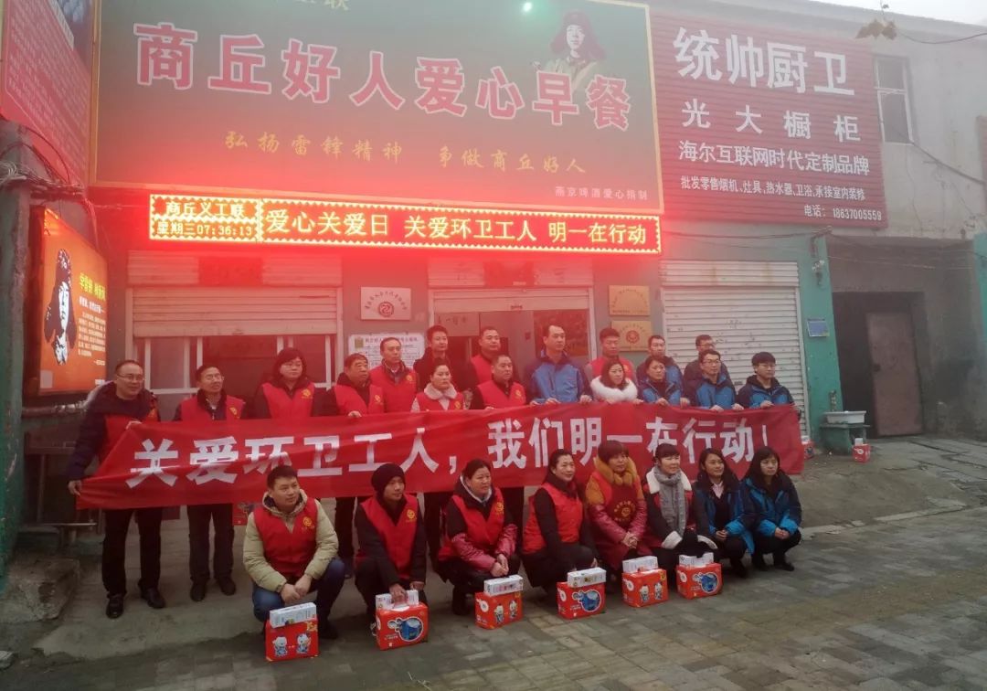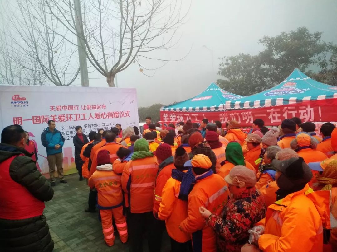 1月17日,天還未亮,明一國際愛心小組走進河南省商丘市為環(huán)衛(wèi)工人獻愛心活動,商丘市義工聯(lián)、商丘市睢陽區(qū)關工委也參與了本次活動。明一國際為在寒冬中堅守的環(huán)衛(wèi)工人送去溫暖的問候。為他們帶來了明一營養(yǎng)奶粉和冬季保暖物品,關心他們的生活。