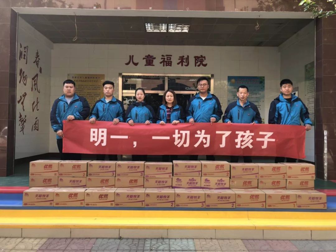4月16日,明一國際”關愛中國行·讓愛益起來”公益活動,走進石家莊市社會福利院,為這里的300名孩子捐贈奶粉,幫助他們提升營養,給孩子們送去關愛和溫暖。